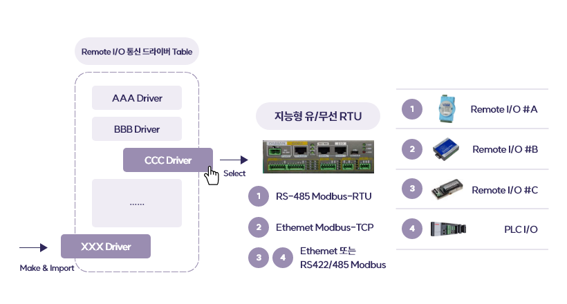 특장점다양한 현장의 산업용 프로토콜 및 드라이버 제공으로 시스템 확장 및 유연한 설계 가능